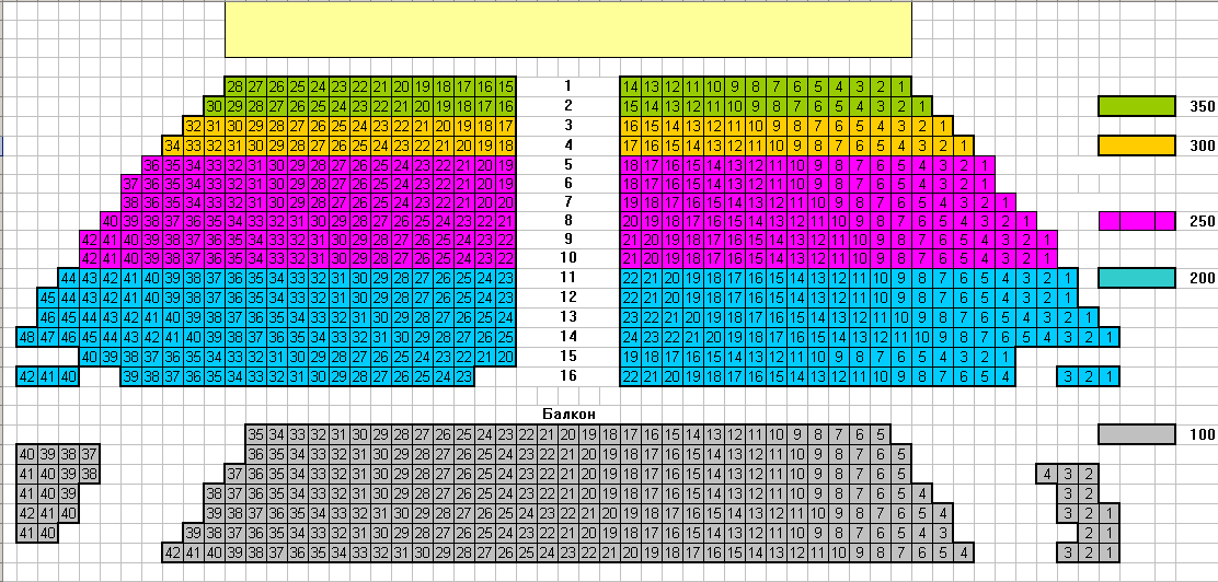 Стоимость билетов зависит от ряда, в котором Вы предпочитаете сидеть:
