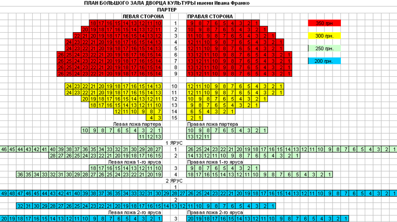 ложи партера, 1-ый ярус, ложи 1-го яруса – 250 грн.